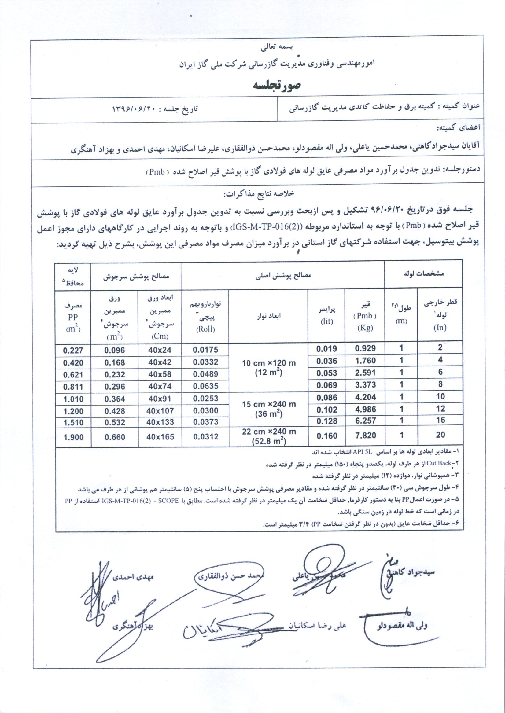 جدول برآورد مواد مصرفی پوشش بیتوسیل مصوب شرکت ملی گاز ایران